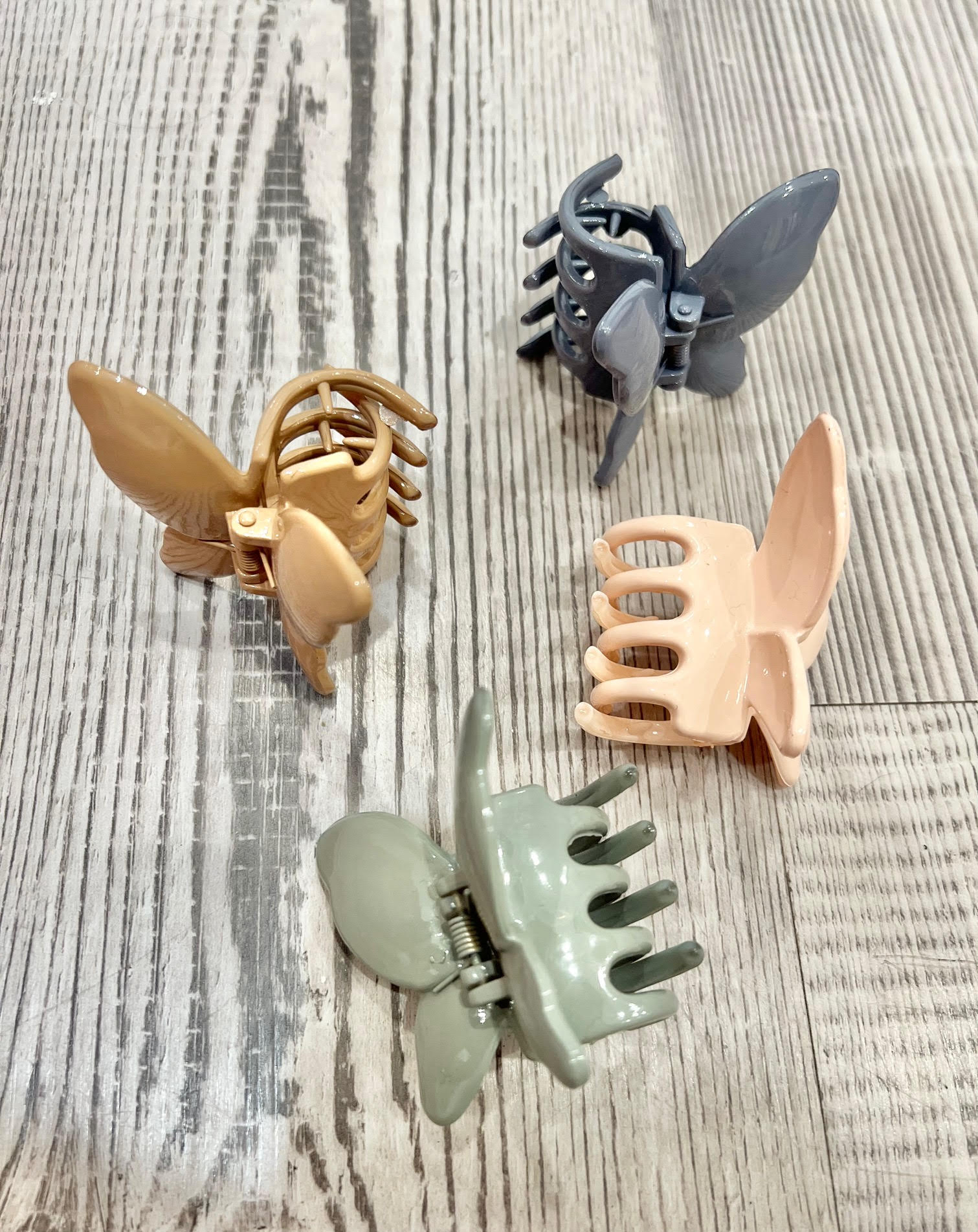 A cute, simple yet detailed hair clip. The butterfly detail is a unique touch. Strong, durable hinge that holds hair all day. Medium size for average to thin hair.