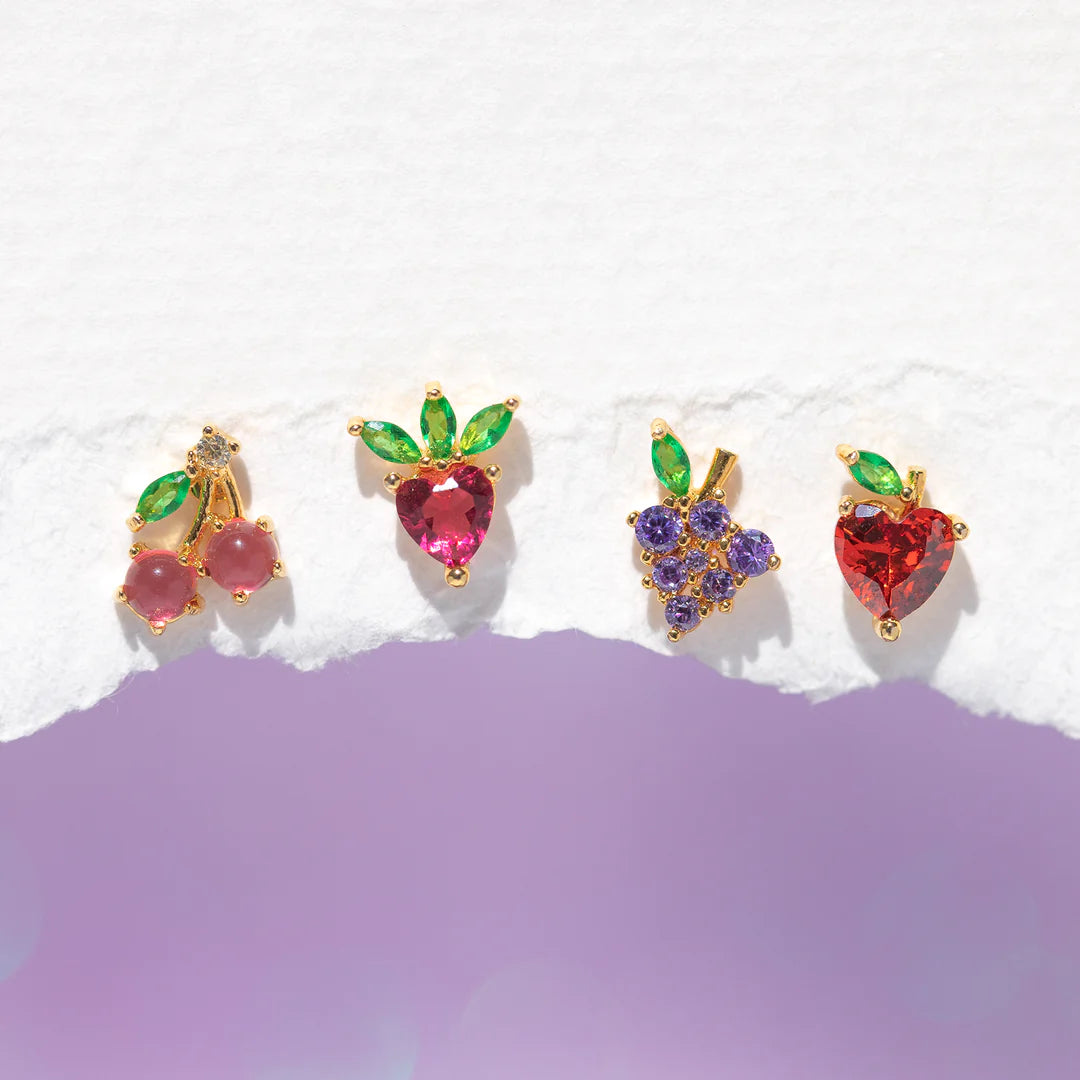 - Includes 4 single earrings - 1 grape, 1 cherry, 1 strawberry, and 1 apple