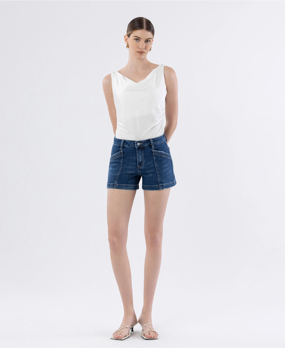 F. Rise: 10" / inseam: 3 3/4" / leg opening: 24 1/4"