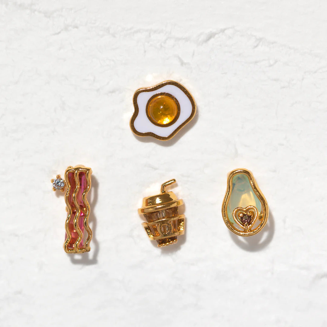 Our Thanks a Brunch Stud Set celebrates the one thing weekend warriors love... brunch! What's better than a decadent egg yolk, ripe avocado, sizzling strip of bacon, and an iced coffee on a weekend? That's right, nothing! Add this playful and oh-so-cute stud set to your collection.